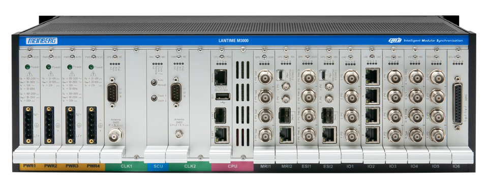 M3000 er Meinbergs første produkt i IMS-serien (Intelligent Modular Systems) som tilbyr integrert redundans for klokkekilder, strømforsyninger og kjøling kombinert med et modulært chassis som støtter hot-swap. Med 18 modulplasser og det 3U store chassiset støtter M3000 opptil fire strømforsyninger, to klokkemoduler, en switchmodul, en CPU modul og 10 I/O moduler.
